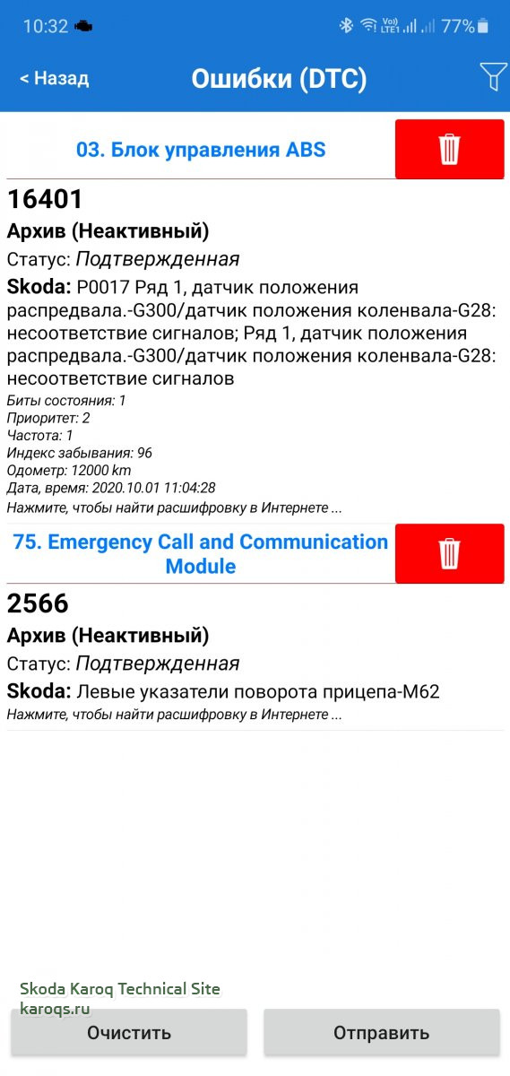 Информация полезна для владельцев автомобилей Фольксваген, Шкода, Ауди и Сеат имеющим любой из диагностических адаптеров типа: VAG-Com, VCDS, Вася-Диагност, OBDeleven, Carista OBD2, VAS 5054A и др. позволяющий считывать ошибки VAG. Диагностический адаптер типа OBD2 (универсальный сканнер для разных марок авто) не подходит для этих целей т.к. будет показывать только очень ограниченное количество ошибок не видя остальных. Сканнер OBD2 сможет показывать коды неисправностей стандарта OBD II только из колонки "Код ошибки (OBD II)".