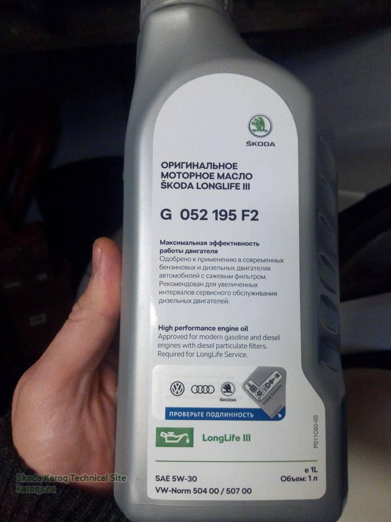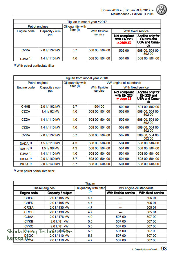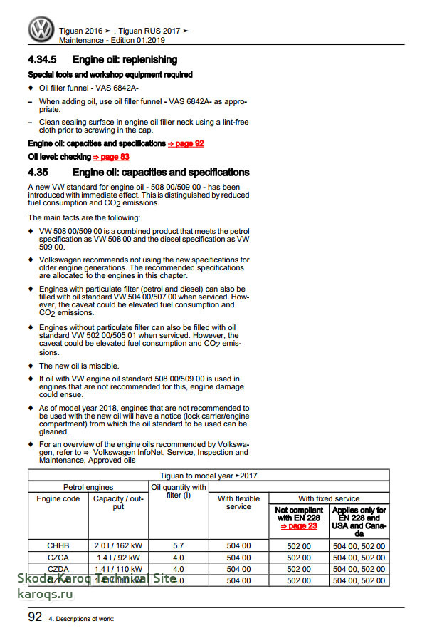 Заправочный объём масла, допуски моторных масел VW для Skoda Karoq