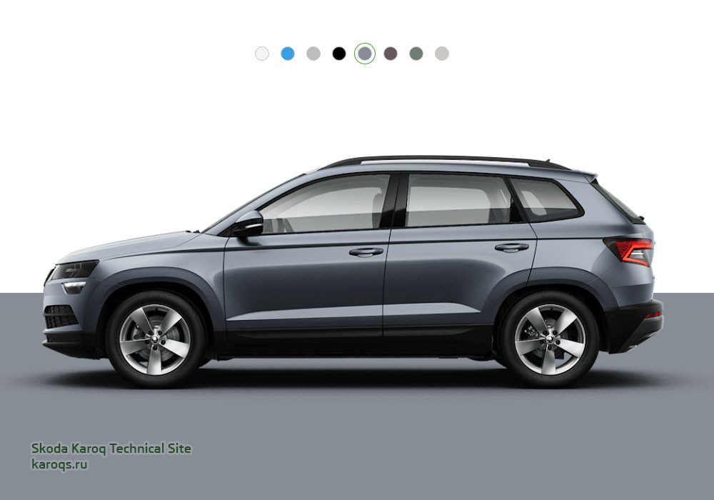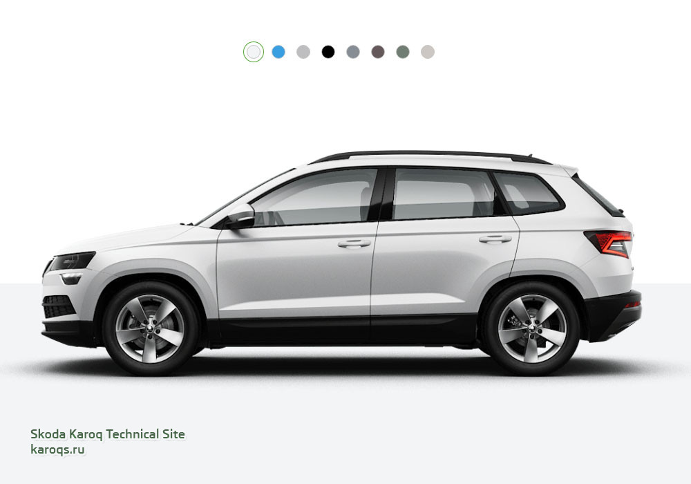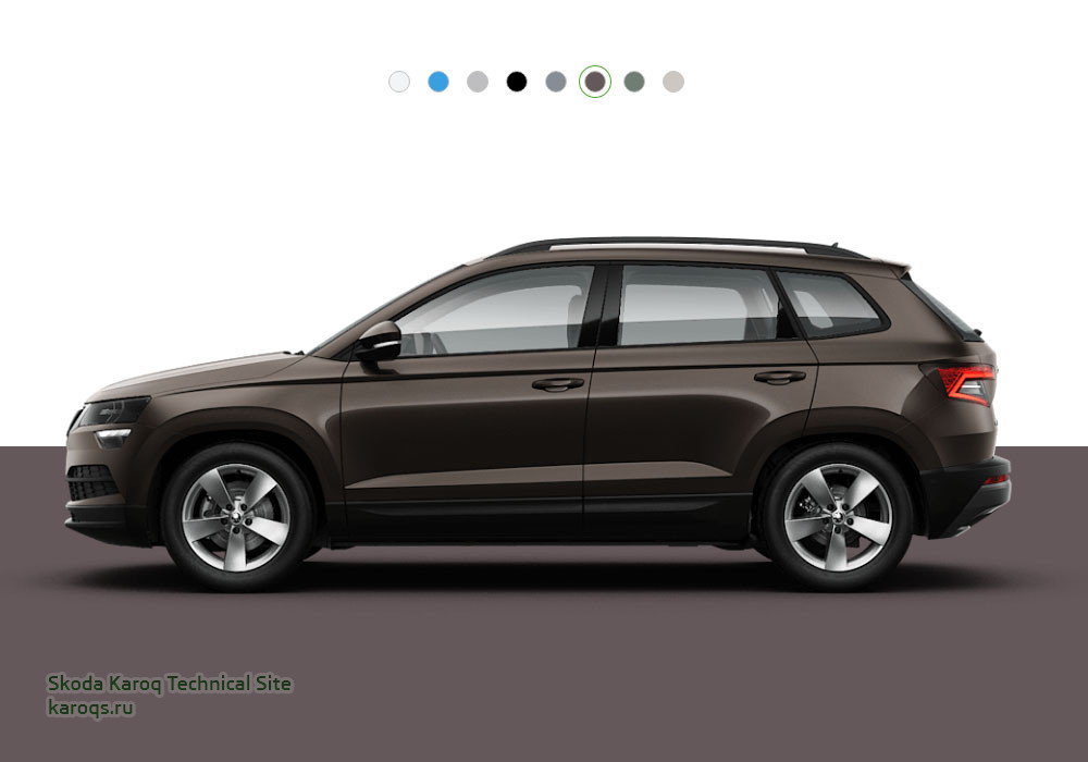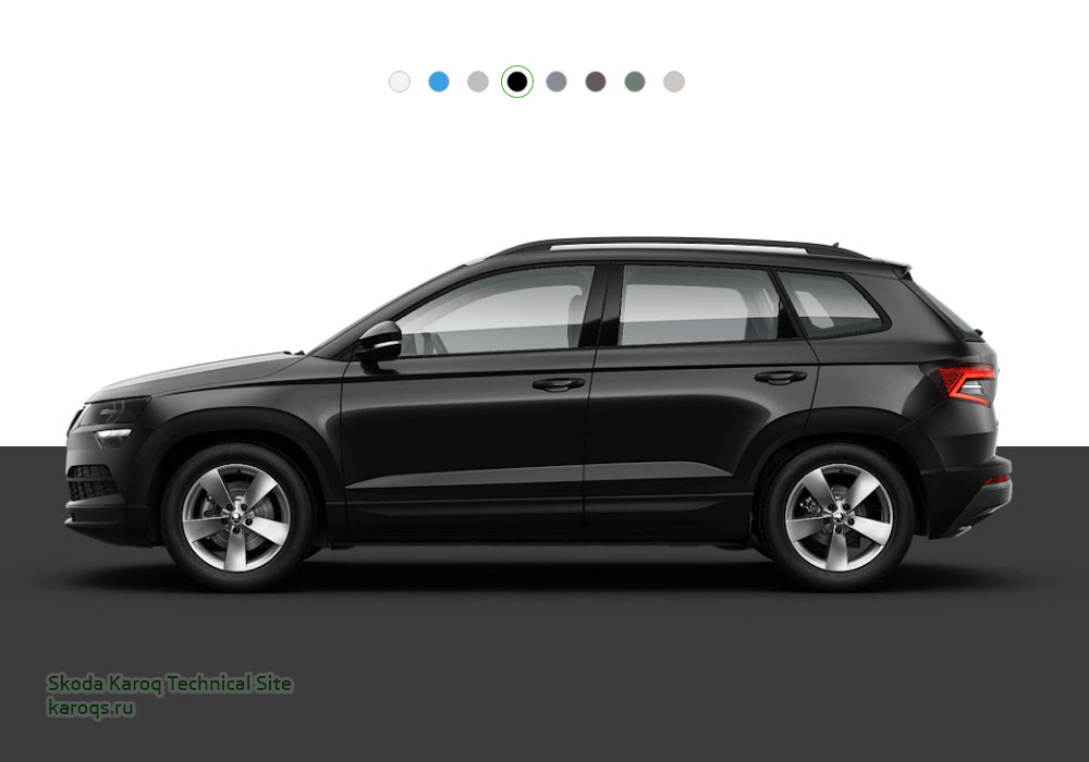 Компания Шкода предлагает для Карок цветовую гамму кузова состояцую из 14 цветов (Европа) и 8 цветов (Россия).