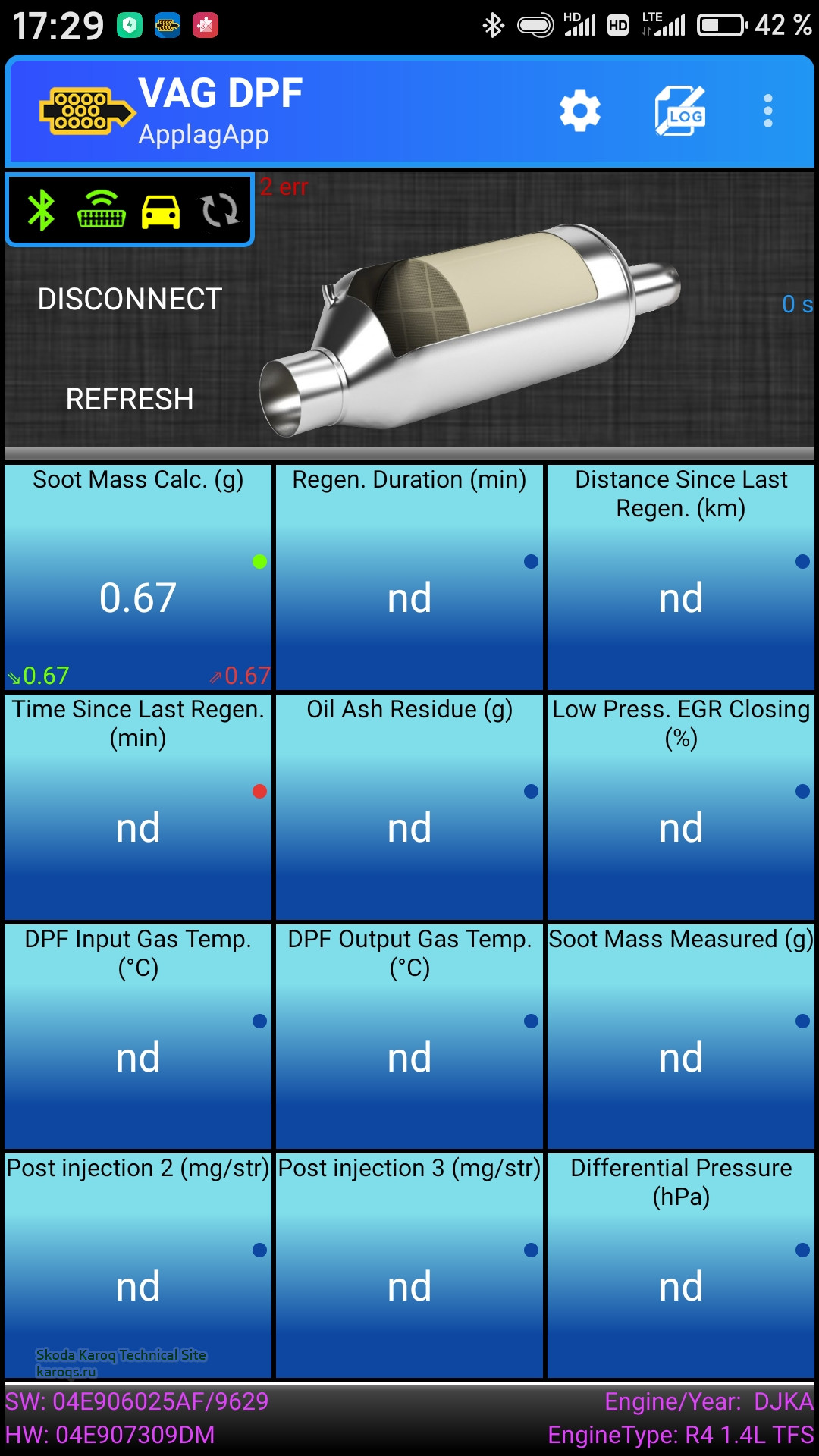 IDE00433 Сажевый фильтр: объем сажи 0.00 l