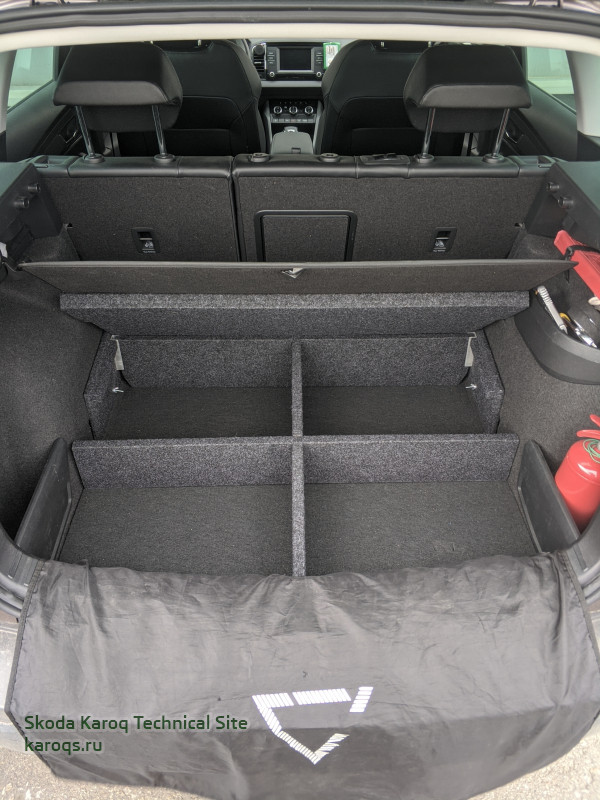 Так как "постоянных" вещей в моём багажнике достаточно много, решил прикупить неоригинальный фальшпол-органайзер для своего "Мишки". Заодно получаем ровный пол в багажнике, мало ли когда придётся поспать в машинке на природе (хоть Карок и маловат для этого, но всё же....).