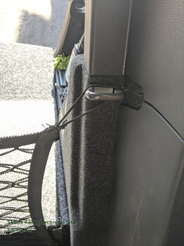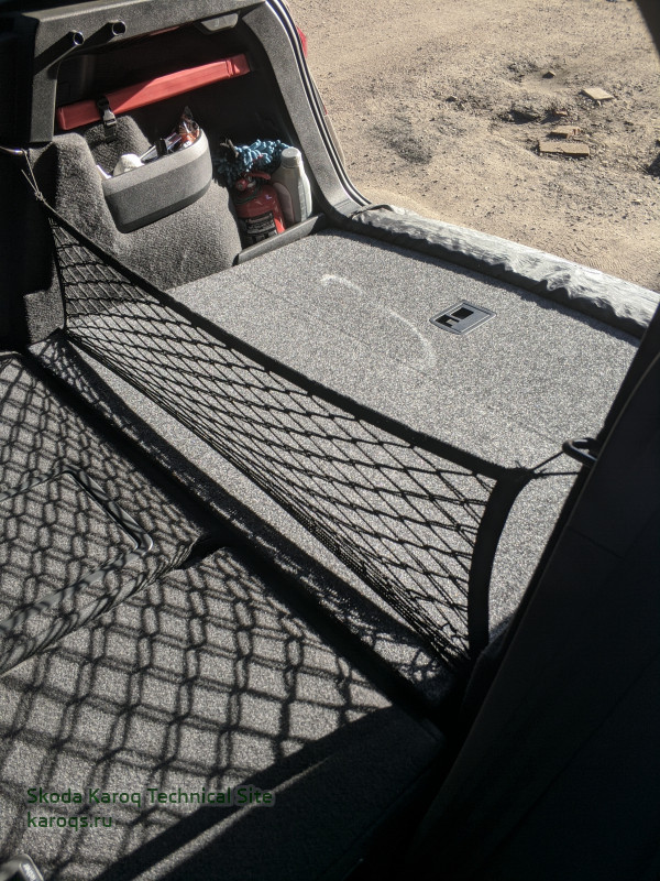 Вторую сеточку разместил в багажнике. Снимается быстро. Груз теперь не уезжает далеко) Цеплял за штатные петли. Фальшпол при этом функционирует.