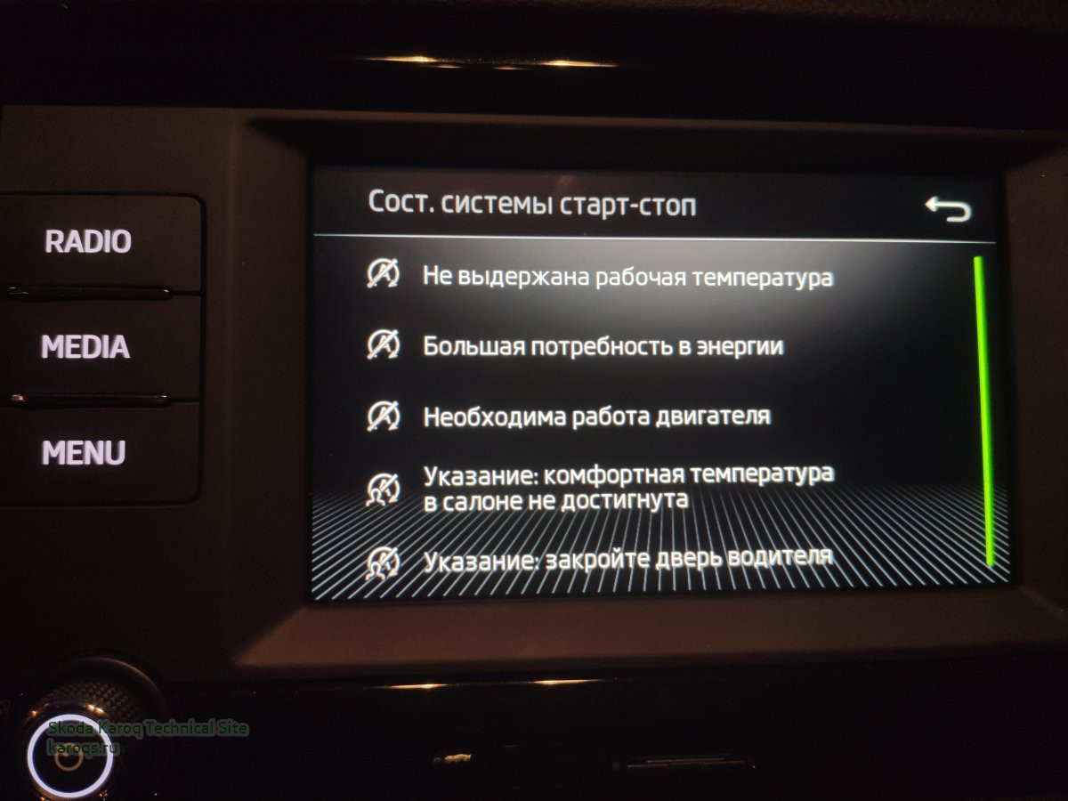 Как я думаю, что это связано с европейскими нормами плюс учитываем, что это проектировал ваг (у них своя интересная логика, например если производилась замена масла, а датчик капота не увидел, что капот открывался, то машина может не дать сбросить информацию о замене масла.....по крайней мере на старых вагах так). Так как у вас, скорее всего, безключевой запуск двигателя, то при запуске двигателя с сигналки у вас используется не без ключевой передатчик, а сам транспондер (семечка). Машина, скорее всего, считает, что у вас села батарейка в ключе и так как она не видит самого ключа, она не дает ей заглохнуть (отключает старт-стоп).