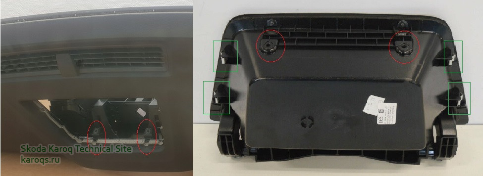 Извиняюсь, много времени прошло с установки ящика - забыл про одно отличие нашей передней панели от европейской. На одном из найденных прошлым летом фото с разборки внутренностей европейской панели видно, что на самой панели предусмотрены два места крепления ящика с вставными пластинчатыми гайками. Ящик дополнительно крепится через штатные отверстия саморезами. Поэтому я очень внимательно отнесся к размеру и форме выреза под ящик в монтажной панели нашего Карока, и потому ящик в вырез сел очень плотно за счет боковых пружинных креплений и никакого дополнительного крепления саморезами не делал. В принципе, на нашей панели зачатки креплений под эти саморезы тоже существуют, но он и так держится хорошо.
