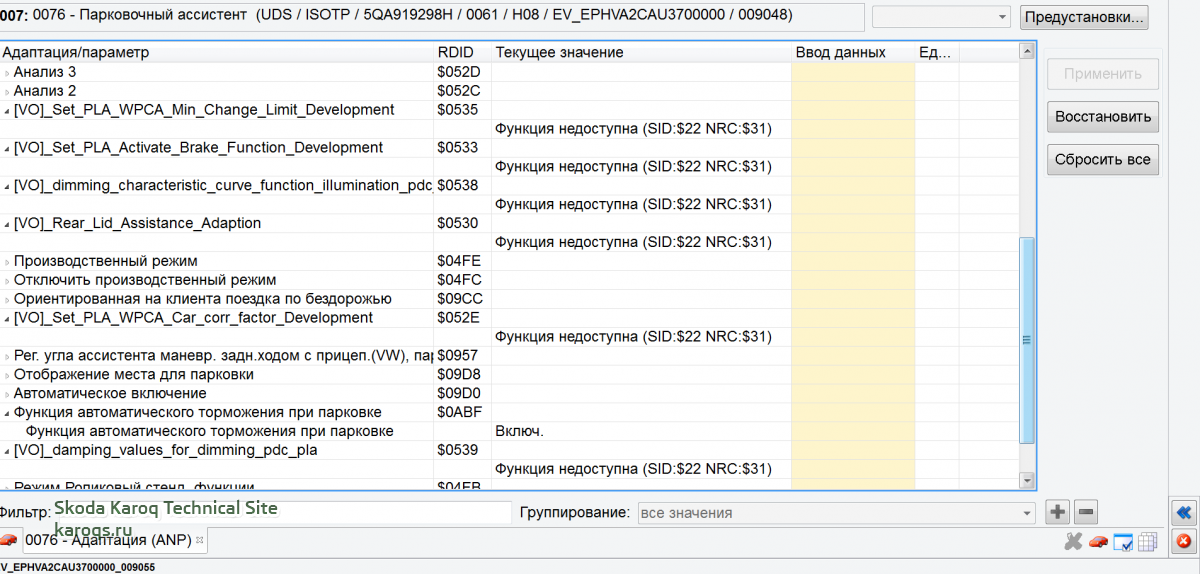 Залил параметрию от Суперб, ваши кодировки прописались. Но новая проблема вылезла - графика при автоматическом включении парковочного ассиста при движении вперед исчезла.Тут не подскажу, увы. Я покупал уже с залитой параметрией.