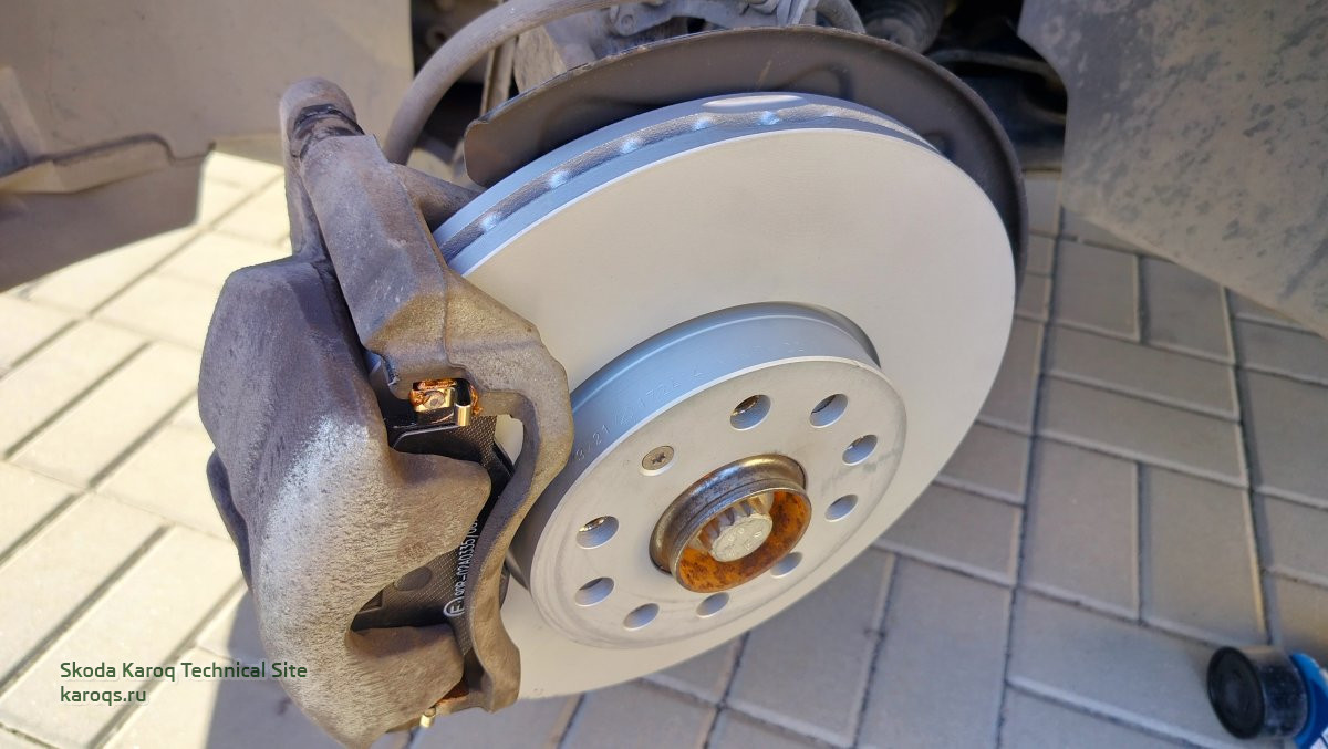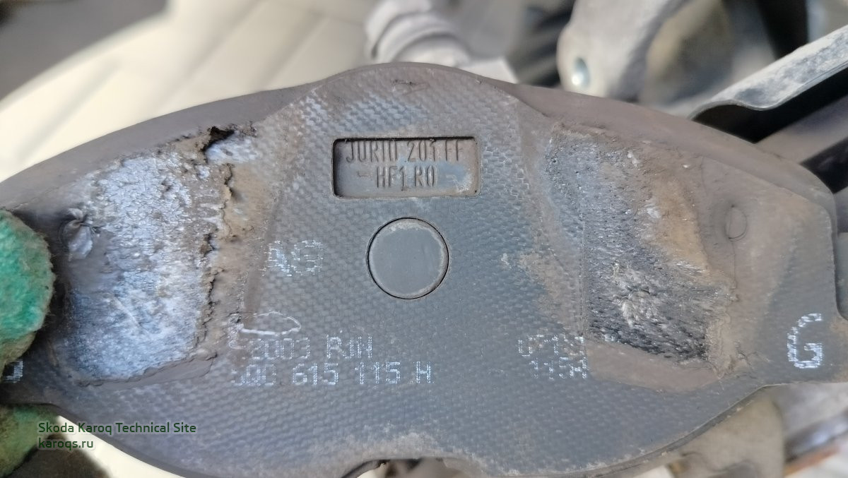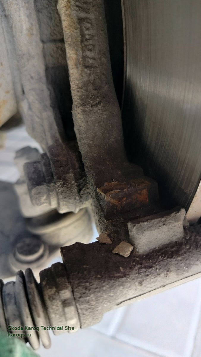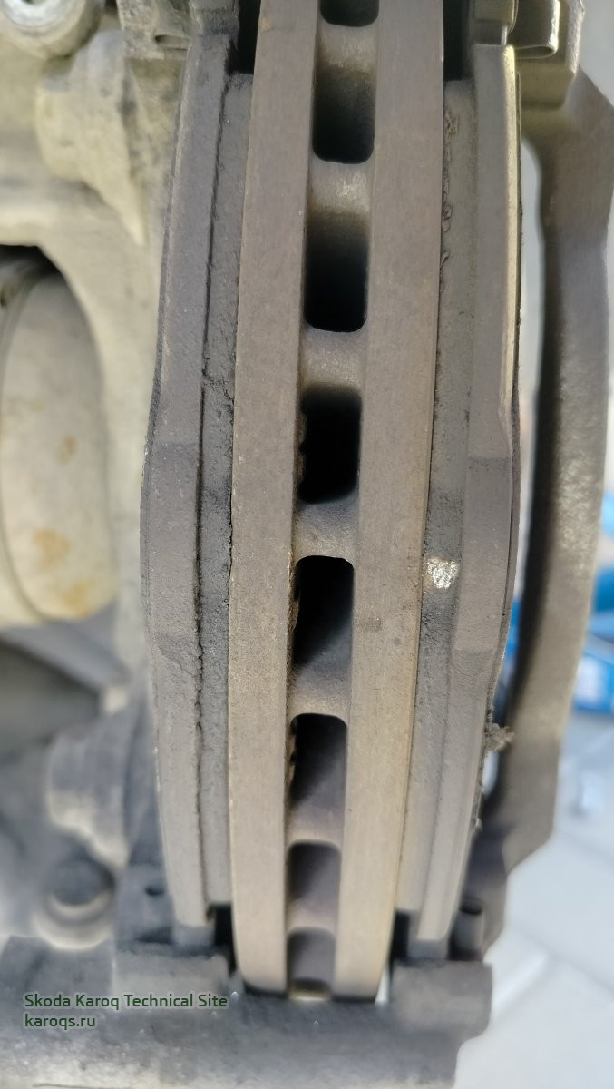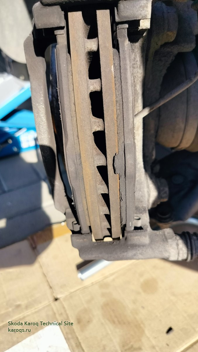 С завода стояли накладки Jurid. Скобы подзасраны, надо чистить минимум раз в год. Смазка на направляющих - грязная, меняем.
