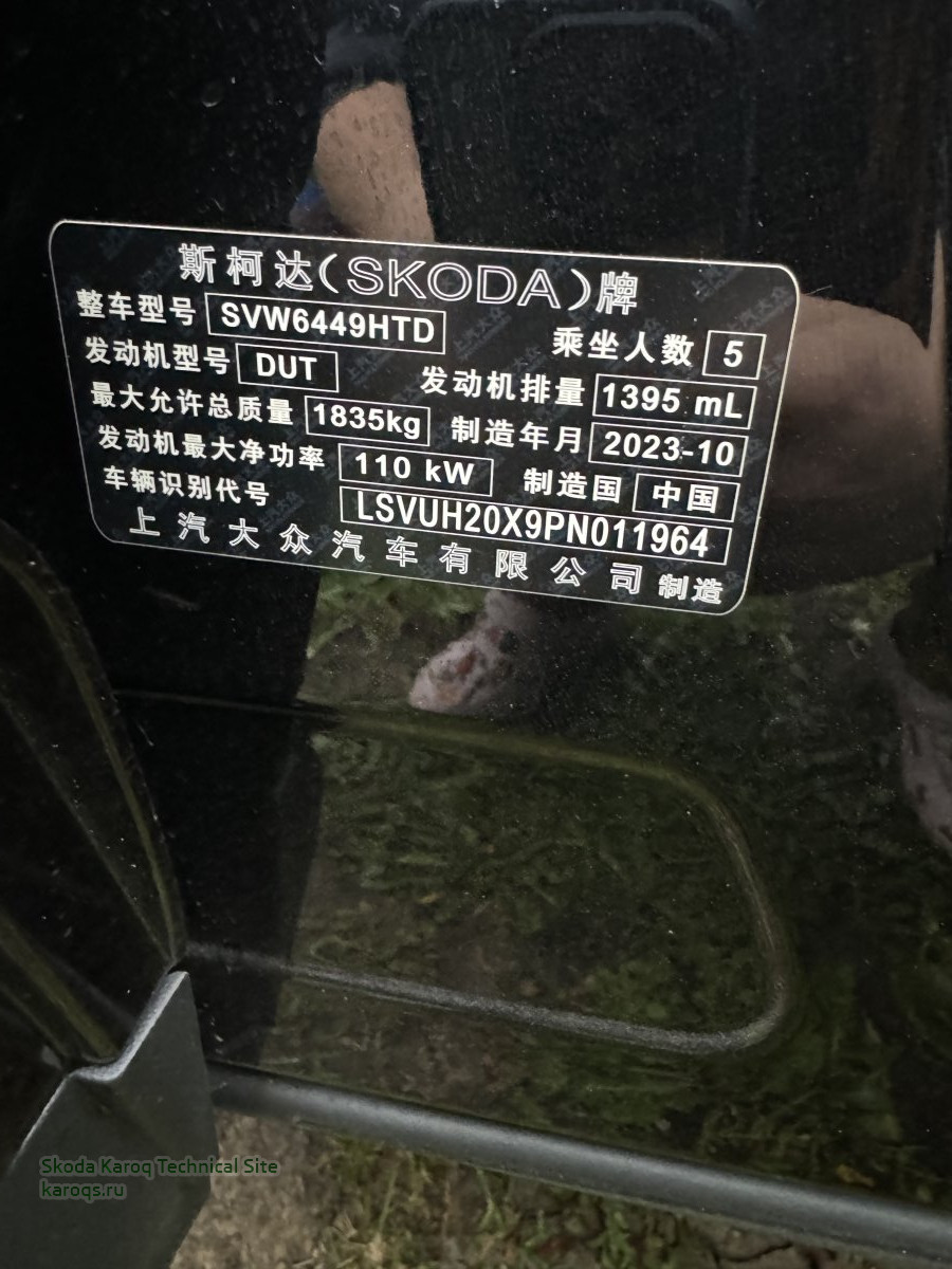По отзывам владельцев у Шкода Карок такой наклейки нет, ни в сервисной книжке (она электронная), ни в багажнике под ковром.