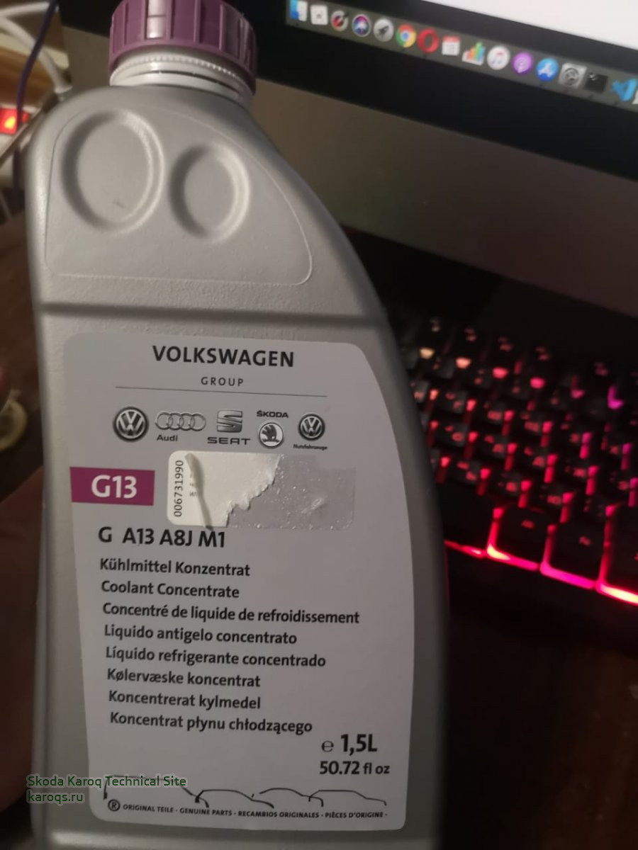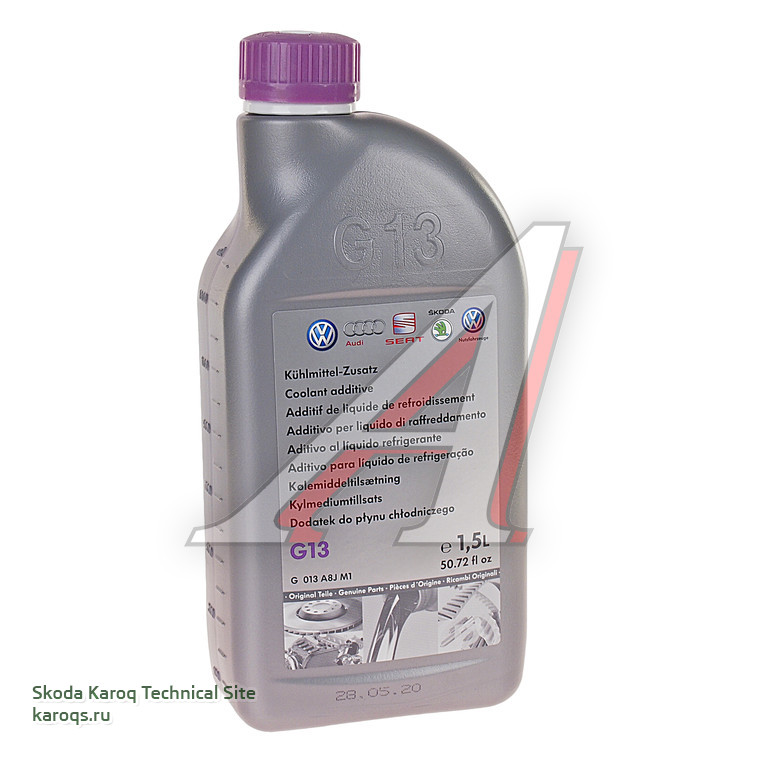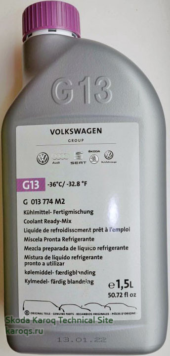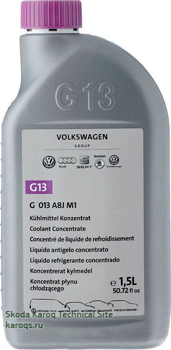 Для Шкода Карок антифриз G13 не меняется весь срок службы автомобиля.
