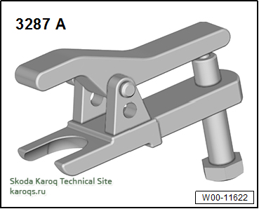 – С помощью съёмника шаровых шарниров -3287A- выпрессовать шаровой шарнир/наконечник рулевой тяги из поворотного кулака.